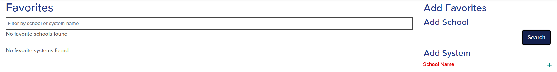 Schools can also be added as Favorites from the Schools Found page. The Favorites only filter can be used to limit results to these schools.